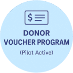 Donors sponsor kits for families in need. Vouchers are redeemed via QR code or intake form, with kits delivered to daycares or homes.